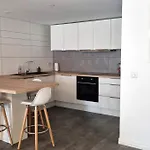 An equipped kitchenette with an oven and a dishwasher is included at the apartment.